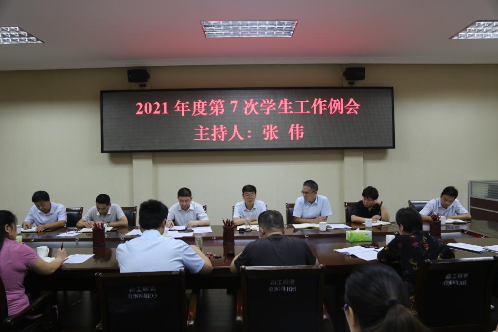 本网讯(特约记者/张启鑫)9月9日,校党委副书记、工会主席张伟主持召开我校2021年度第7次学生工作例会。学生处、团委、心理健康教育中心、党委宣传部、保卫处、后勤服务中心、校医院等单位主要负责人,各教学院党委副书记参加会议。