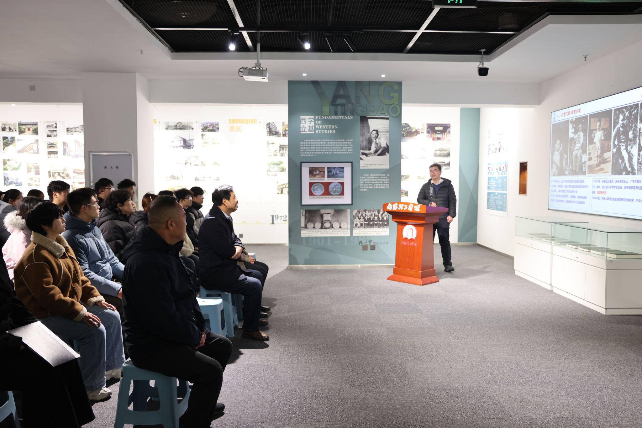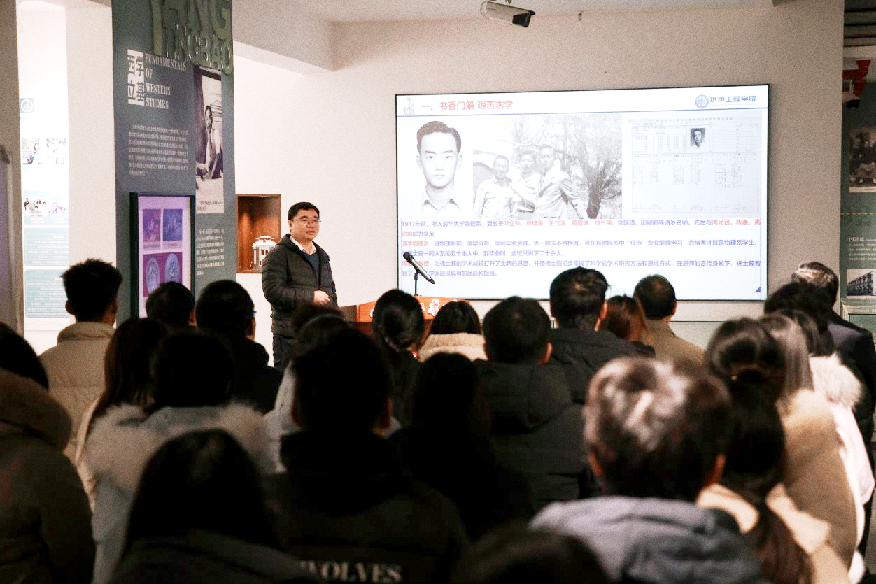 王小婉)12月12日上午,南阳理工学院“杨廷宝建筑艺术馆”开馆首日,学校在馆内举办“中国共产党人精神谱系”宣讲活动,哈尔滨工程大学水声工程学院党委副书记、副院长张海刚教授作“学习时代楷模、弘扬科学家精神——学习杨士莪院士先进事迹”主题宣讲。