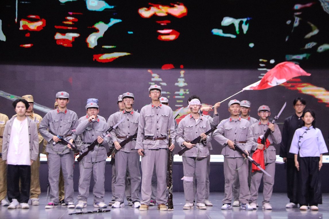 经过初赛和复赛的激烈角逐,来自传媒学院、信息工程学院、教师教育学院等学院的八个节目晋级决赛。决赛现场,各参赛团队通过情景再现、诗歌朗诵、时空对话、多媒体叙事等多种艺术形式,生动诠释红色精神,表演者情感真挚、演绎投入,将革命先烈的英勇事迹、崇高理想与当代青年的思考感悟紧密连接,舞台表现极具感染力与共情力,赢得了现场观众的强烈共鸣与阵阵掌声。