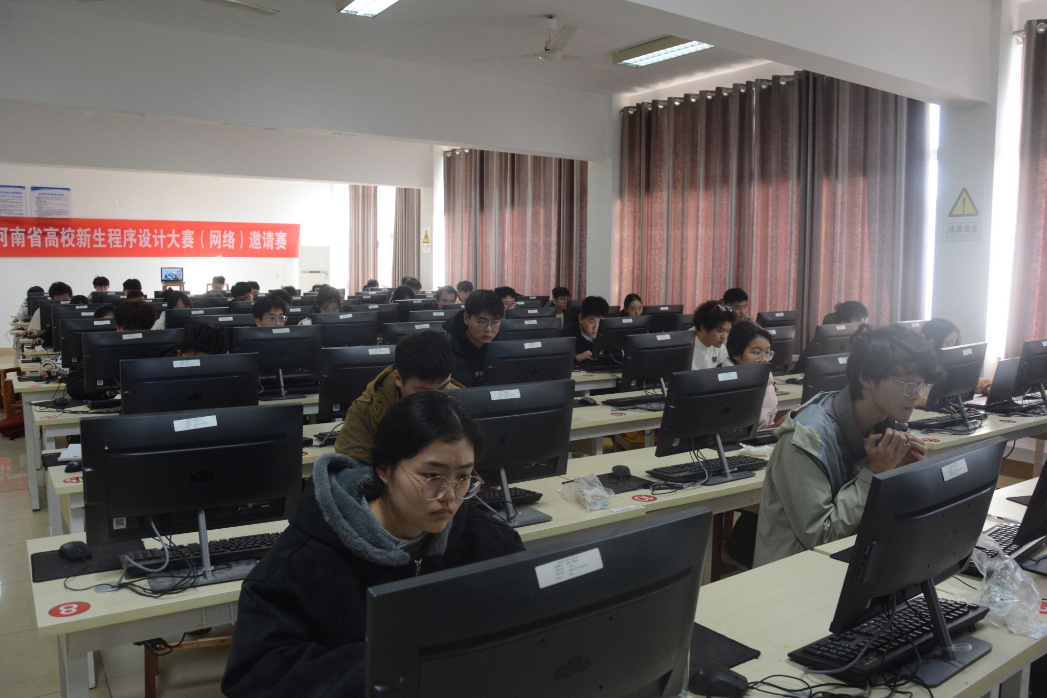 陈可)12月14日,第六届河南省高校新生程序设计大赛(网络)邀请赛现场决赛在我校举办。此次大赛由校党委学生工作部主办,计算机与软件学院承办,自12月3日初赛开始以来,共计吸引省内33所高校的2000余名选手在线切磋交流。