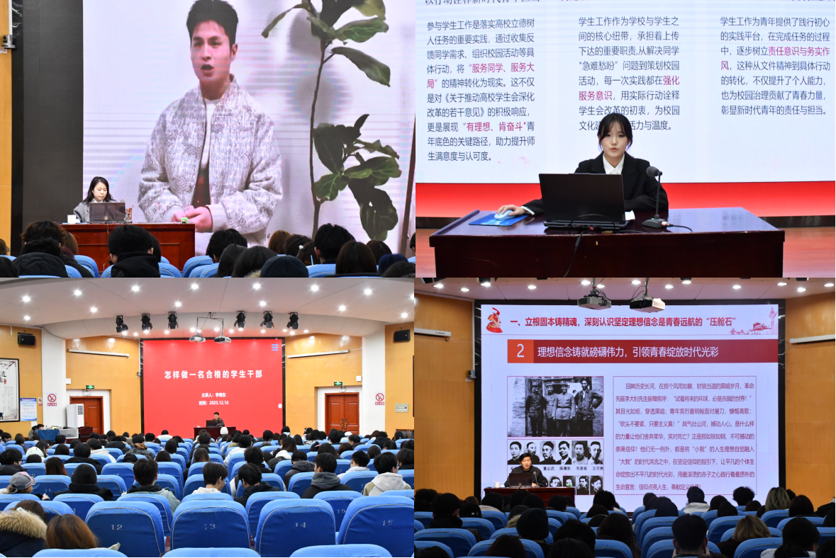 王郡琳)12月16日至17日,校团委举办2025年学生会干部培训会。此次培训共四讲,团属学生组织负责人、各教学院学生会主席团、各部负责人及团支部书记代表共200余名学生干部参加。