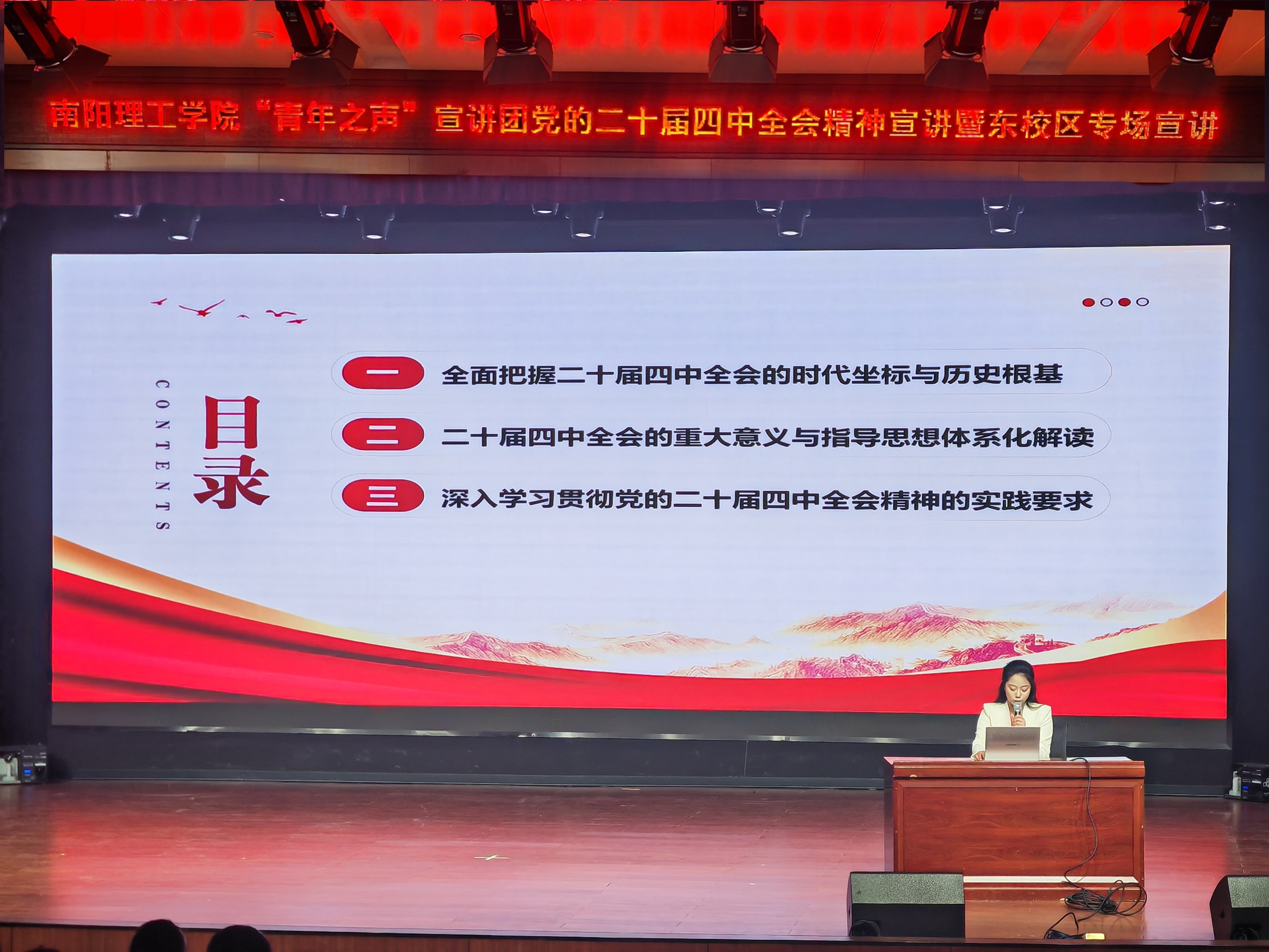 段蕴芳)12月19日下午,“青年之声”宣讲团党的二十届四中全会精神宣讲暨东校区专场宣讲在东校区演播厅举行,各学院200余名团员青年参加活动,在聆听宣讲中感悟青春力量、汲取奋进动力。