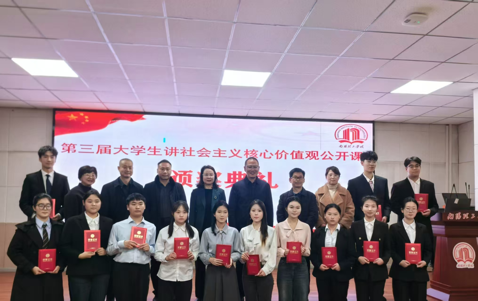 郭苏豫)12月 30 日,南阳理工学院第三届大学生讲社会主义核心价值观公开课展示活动在学校教师发展中心智慧教室圆满落幕,校党委书记张爱红出席活动并讲话,校党委宣传部、教务处、马克思主义学院负责人和百余名师生代表参加活动。经过激烈角逐,活动最终评选出特等奖 1 名、一等奖 3 名、二等奖 5 名、三等奖及优秀奖若干名。