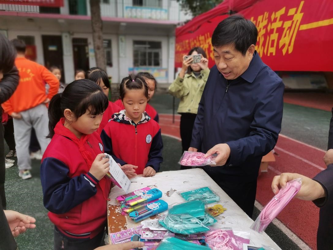 肖泽昌一行首先来到贫困户家中进行慰问,并就脱贫情况、政策帮扶等相关问题与帮扶户进行交流。接着,大家来到校团委组织的结对帮扶“六个一”专项社会实践活动现场,肖泽昌对智能制造学院承办党史知识宣讲活动、生物与化学工程学院为村民宣讲疫情防控知识、建筑学院开展爱心支教之旅活动、教师教育学院送文艺下乡演出、计算机与软件学院和信息工程学院为村民义务家电维修服务、张仲景国医国药开展义诊进乡村等活动一一进行询问、指导。随后,肖泽昌一行来到竹园沟小学,了解我校志愿者在该校开展支教活动情况,并为小学生们送去体育文具用品。
