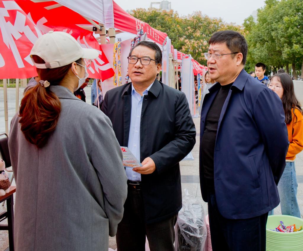 本网讯(特约记者/李春燕)10月22日,我校举办2021年度大学生创新创业孵化园创意集市,副校长葛晨光、招生就业处负责人出席活动现场,对各创业团队进行指导。