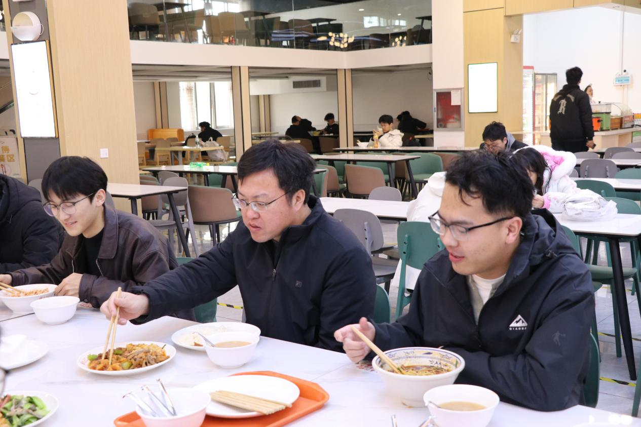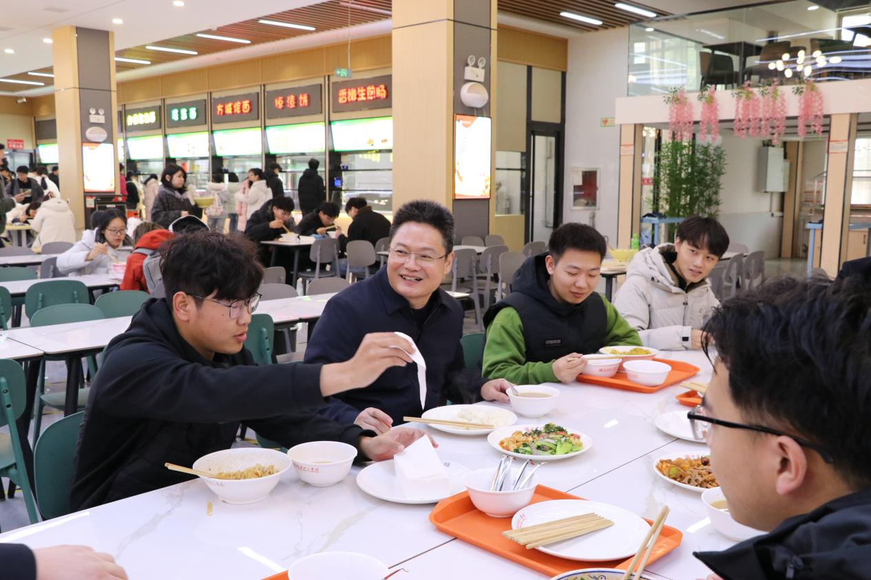 贾小真)3月2日中午,校长郝好山、副校长吴战勇一行前往学苑餐厅一食堂,与在校学生共进午餐,后勤服务中心相关人员陪同。