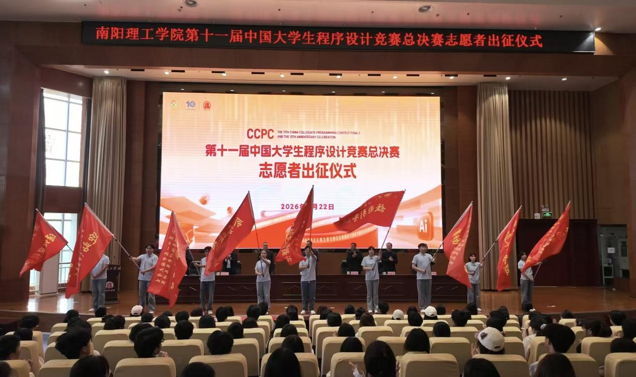 李博民)4月22日上午,为保障第十一届中国大学生程序设计竞赛总决赛顺利举办,凝聚南工青年志愿力量,我校举行第十一届中国大学生程序设计竞赛总决赛志愿者出征仪式。校纪委书记、监察专员于继武,党政办、学生处、招生就业处、计算机与软件学院、后勤服务中心等相关单位负责人及210名赛事志愿者参加仪式。