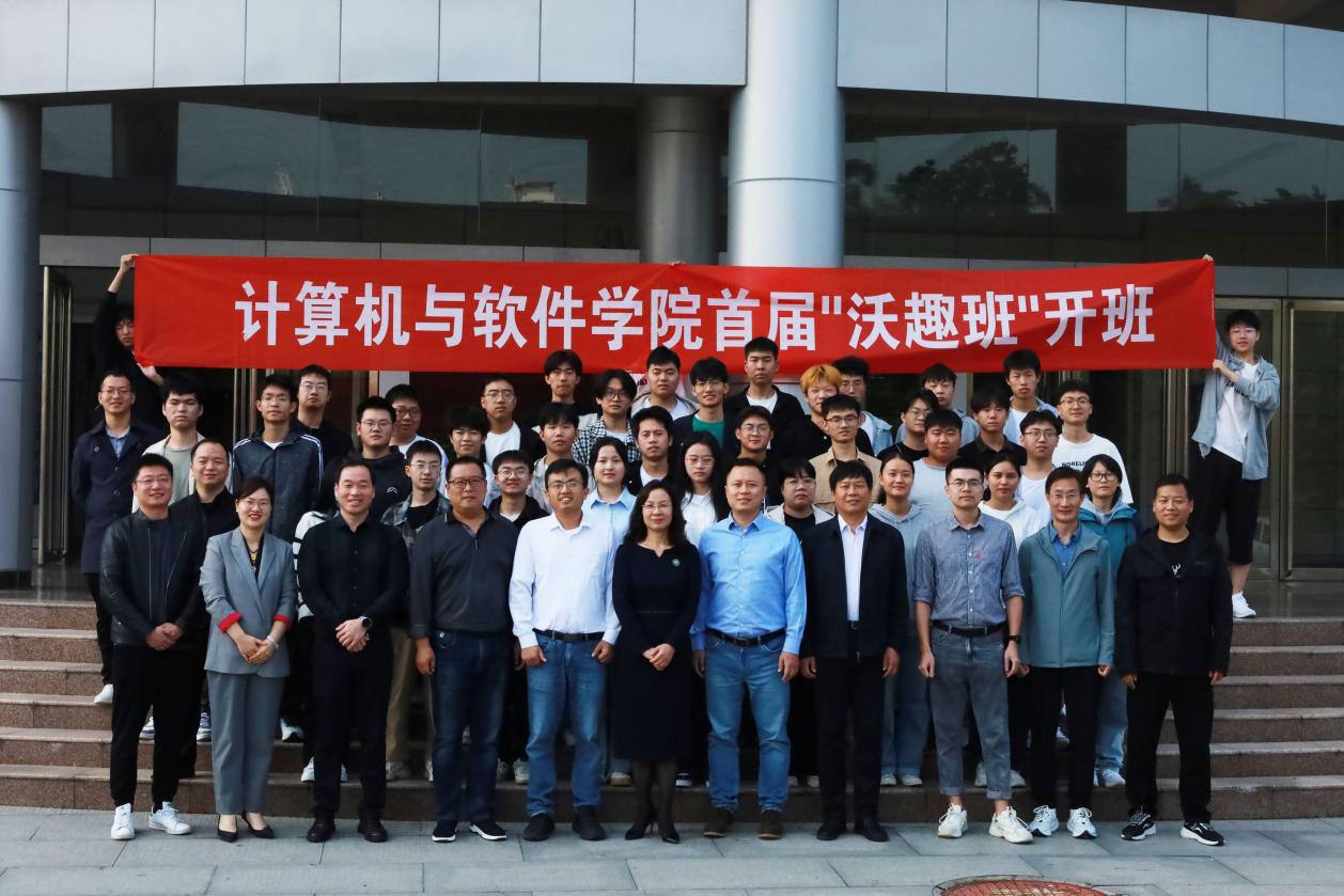 图为2023年10月,南阳理工学院首届“沃趣”校企合作班开班,截至目前,该合作班已连续举办四届。