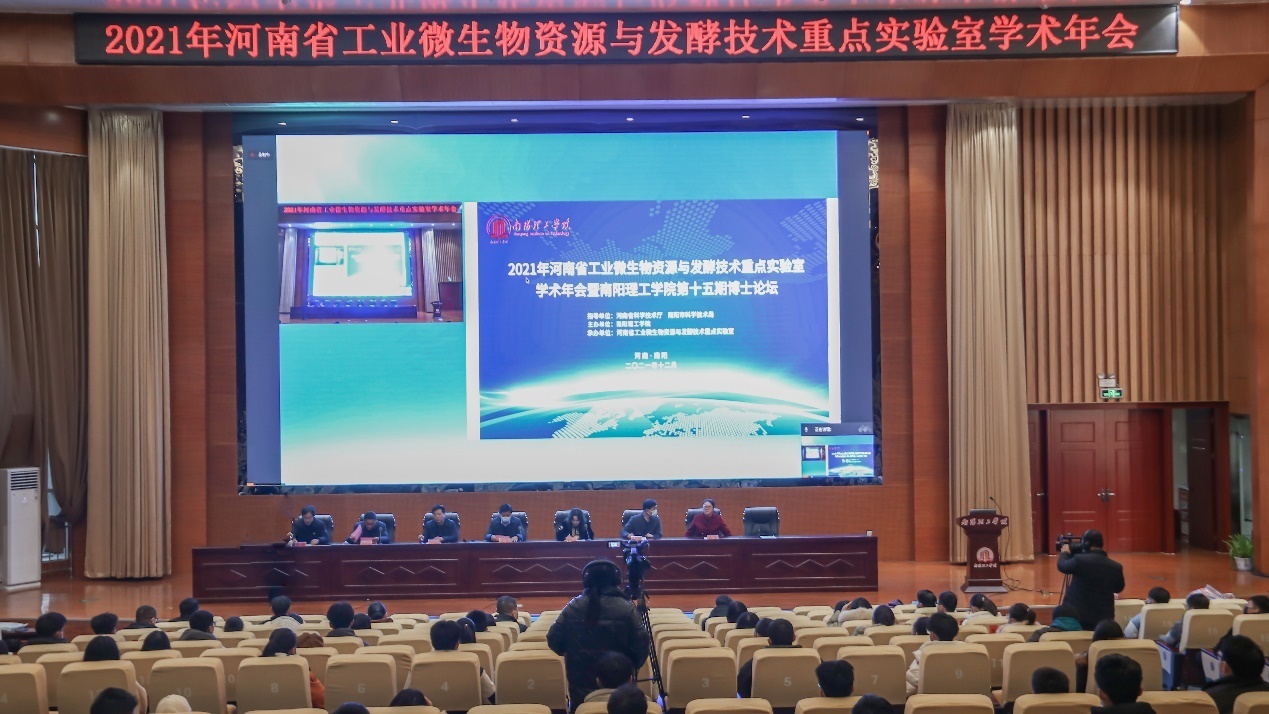 本网讯(学生通讯员/李冯石 王雅洁 杨慧颖 王娜)12月11日,2021年河南省工业微生物资源与发酵技术重点实验室学术年会暨南阳理工学院第十五期博士论坛在我校第三报告厅举办。副校长张爱红、南阳市科学技术局副局长王宇出席论坛,省内外多所高校专家学者、科研管理处负责人、生化学院领导班子成员及我校师生代表参加会议。