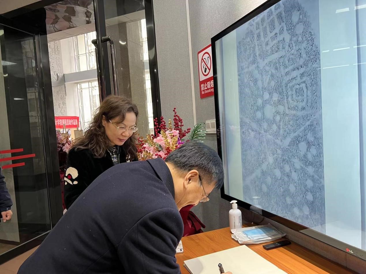 参观数字媒体与艺术设计学院艺术馆后,张景安为学院题词:创新永远在路上。(校对/鲁静薇 审核/肖邓华)