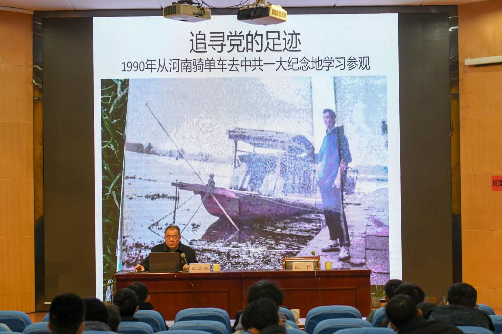 张大生以《学党史 听党话 感党恩 跟党走》为题,结合亲身经历,讲述了自己多年来从事公益志愿服务事业、积极帮困扶贫故事、传承老区红色基因重走长征路的先进事迹。他关爱弱势群体,拥军优属,助人为乐,彰显着道德模范与身边好人的时代光辉;他用感人的事迹感召着社会,诠释着道德的真谛;他以朴实的语言,为师生上了一堂生动精彩的思想道德教育课。整场报告饱含深情、令人动容。