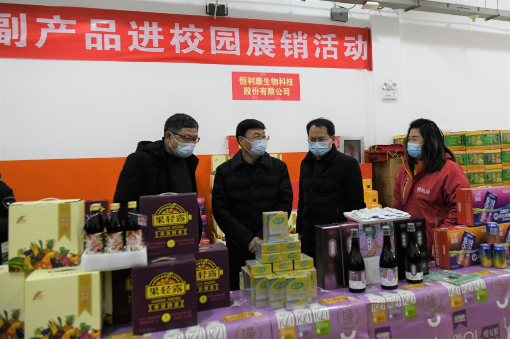 本网讯(记者/鲁静薇)1月5日,校党委书记、工会主席张伟带领党政办、工会负责人和范蠡商学院校地合作项目相关负责老师前往体育馆实地了解我校与南召县结对帮扶农副产品进校园展销活动开展情况。