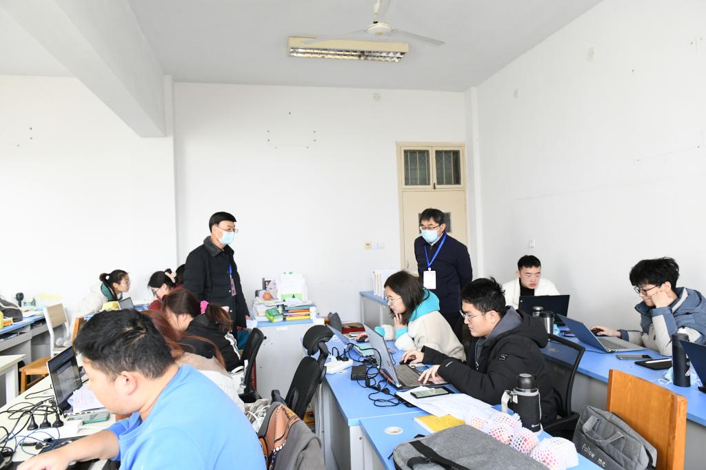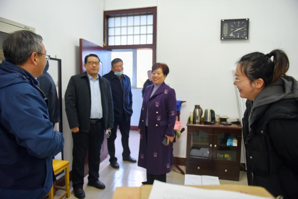 本网讯(记者/鲁静薇)2月21日,校领导刘荣英、安士伟、张伟、张世海、许建辉、葛晨光带队深入各行政处室及教学院部检查人员到岗、学生返校注册、疫情防控错峰上课和教学工作运行等情况。