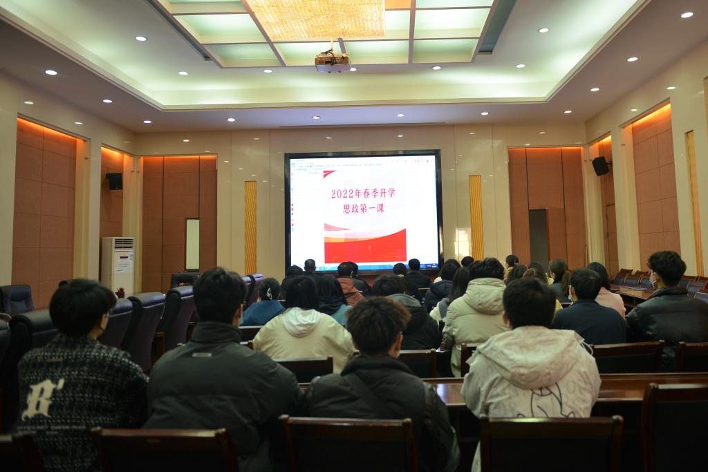 本网讯(特约记者/赵政) 2月28日上午,校党委副书记、工会主席张伟,校党委委员、党委宣传部部长高芳放,马克思主义学院领导班子成员及师生代表在会议中心集中观看全省2022年春季开学思政第一课暨大中小学思政课集体备课直播。