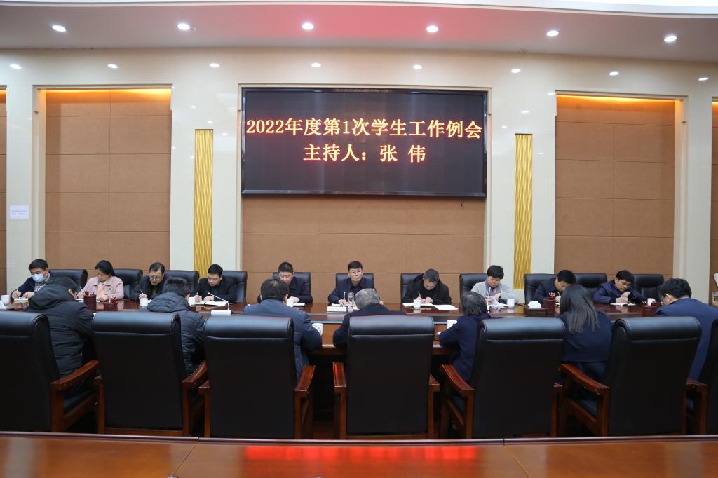 本网讯(特约记者/张启鑫)3月1日下午,校党委副书记、工会主席张伟主持召开我校2022年度第1次学生工作例会,安排部署疫情防控和安全稳定等工作。学生处、团委、心理健康教育中心、保卫处、后勤服务中心、校医院等部门主要负责人、各教学院党委副书记参加会议。