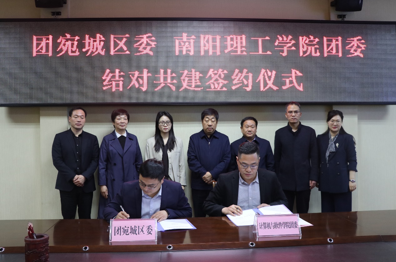 本网讯(特约记者/曾智 学生记者/喻帅)3月15日上午,我校计算机与软件学院团委与共青团宛城区委在中込会馆举行“结对共建”签约仪式。团市委书记杨文杰、宛城区等相关领导,我校副校长肖泽昌出席此次签约仪式。校团委、计算机与软件学院负责人等参加签约仪式。