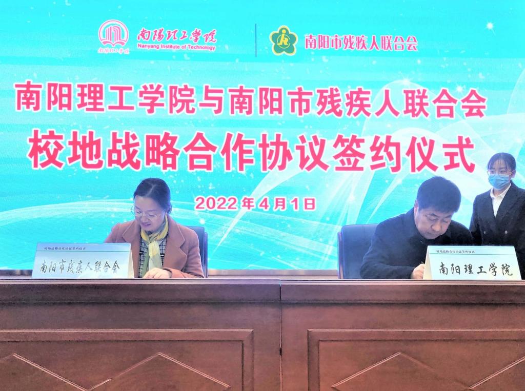 本网讯(特约记者/陈沛)4月1日上午,我校与南阳市残疾人联合会“校地战略合作”签约仪式在南阳市残联举行。副校长肖泽昌,南阳市残疾人联合会党组书记、理事长韩霞,校地合作处负责人及相关人员出席签约仪式。