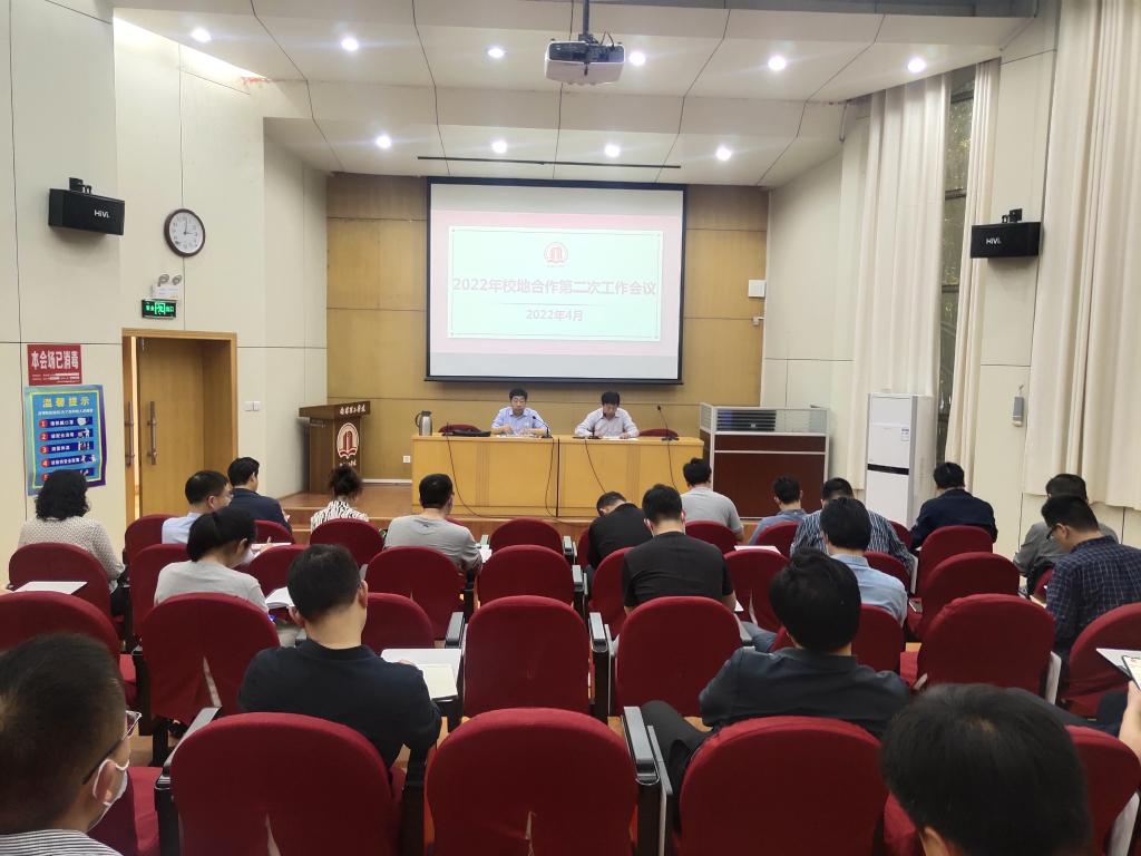 本网讯(特约记者/杨思佳)4月11日,我校组织召开2022年度校地合作工作第二次会议,副校长肖泽昌主持会议,南阳大数据研究院负责人、各教学院主管校地工作副院长及校地合作与科研办公室主任、校地合作管理与服务中心全体人员参会。
