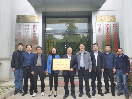 张爱红与润之酒业和京德啤酒负责人共同为南阳理工学院大学生就业实习基地授牌。