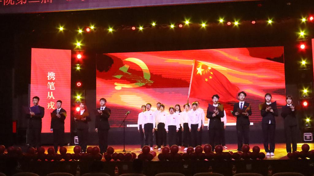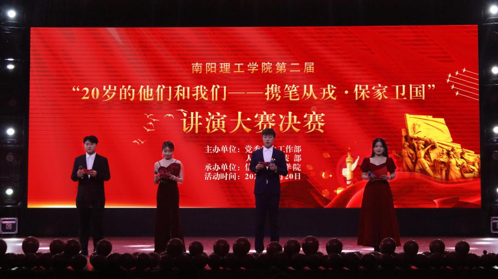本网讯(特约记者/徐梦霖 张露)为鼓励学生响应国家号召从军入伍,将爱国之心转化为报国之行,5月20日晚,我校以线上直播形式在毕业大厅举办第二届“20岁的他们和我们——携笔从戎·保家卫国”讲演大赛决赛。副校长葛晨光出席活动,党委宣传部,党委学生工作部、党委人民武装部,校团委及各学院主要负责人出席并观看比赛,5000余名观众通过直播在线收看。