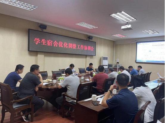 后勤服务中心负责同志详细汇报学生宿舍优化调整工作方案。