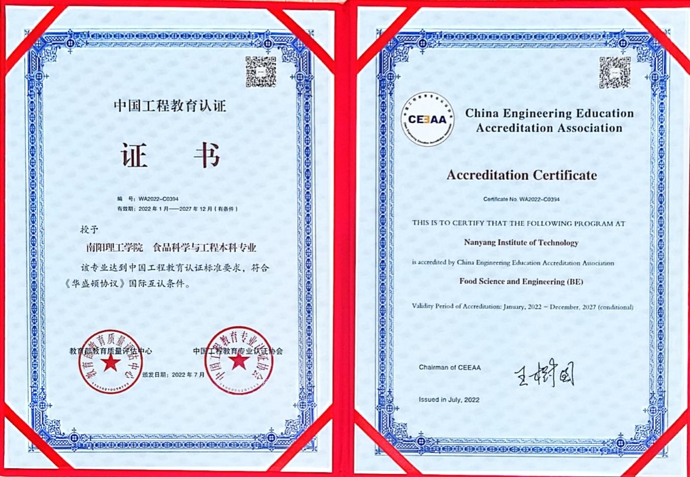 本网讯(记者/张燕 )近日,教育部教育质量评估中心、中国工程教育专业认证协会分别公布了2021年工程教育专业认证结果(工认协〔2022〕21号),我校食品科学与工程专业经过向协会提出认证申请、通过认证自评报告审核,完成专家组线上考查、结论审议等环节,最终顺利通过此次认证。