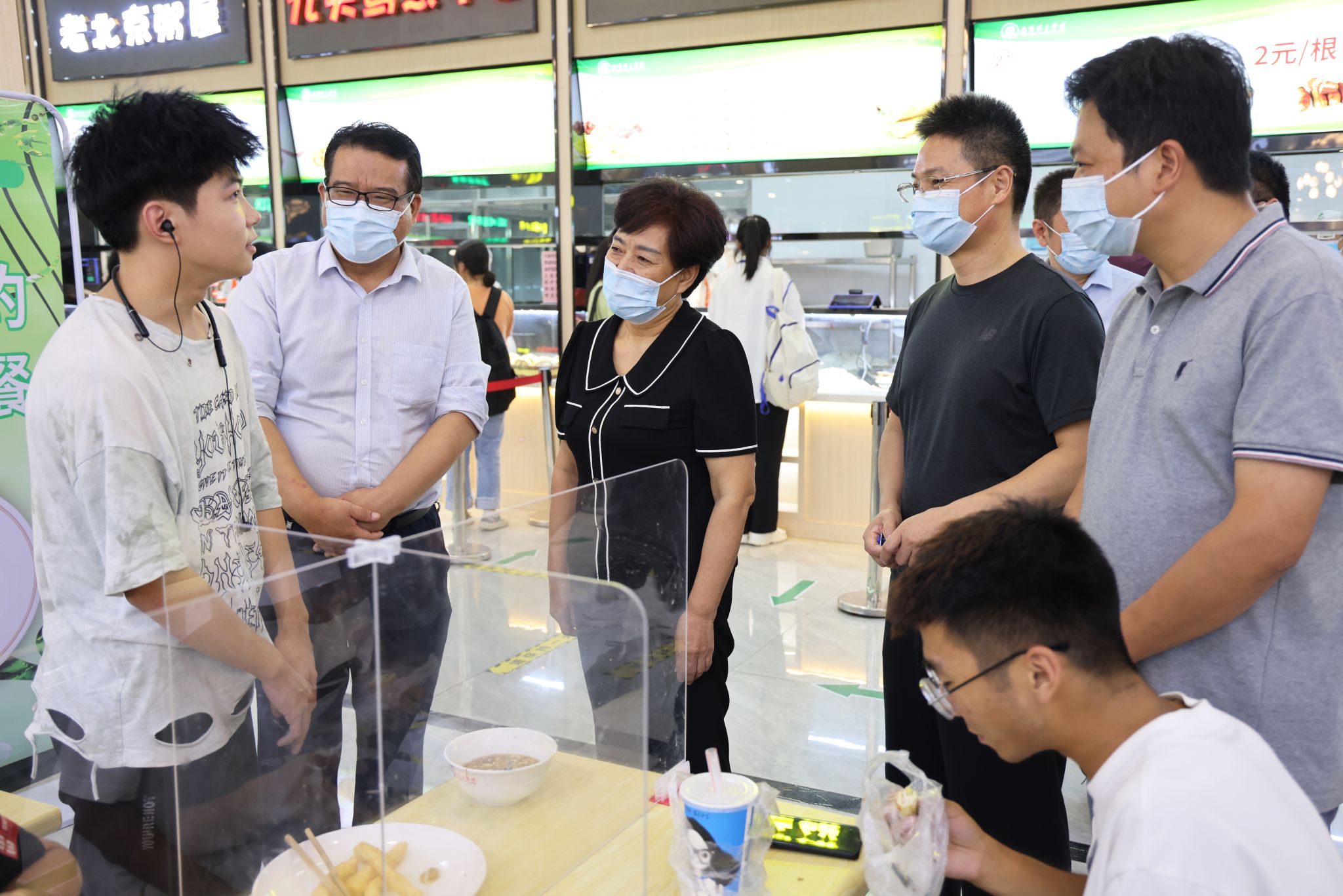 在老校区学苑餐厅,校领导一行认真查看供餐品种、价格、学生用餐秩序等情况并与学生亲切交谈,询问学生就餐体验以及对学校后勤服务的意见建议,并为学生送上温暖的节日祝福。