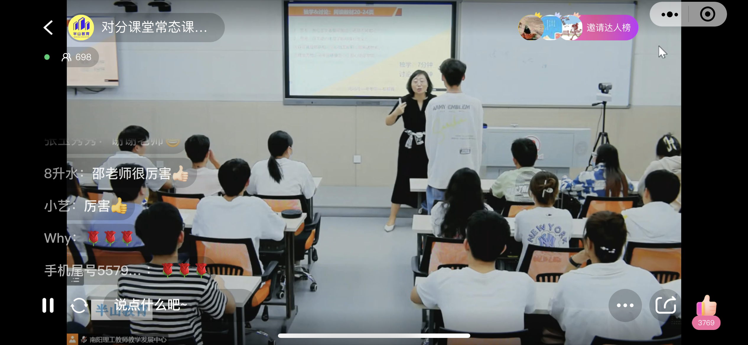 播出过程中,教师各具风采,课程各具特色,收看人数达到7千余人次,并受到各类在线观看教师的一致好评。向全国教师直播自己的课堂,在国内高校尚属首次,我校对分课堂教师发展师常态课六期公益直播,不仅是我校教育教学改革的集中体现,也是向二十大的献礼。
