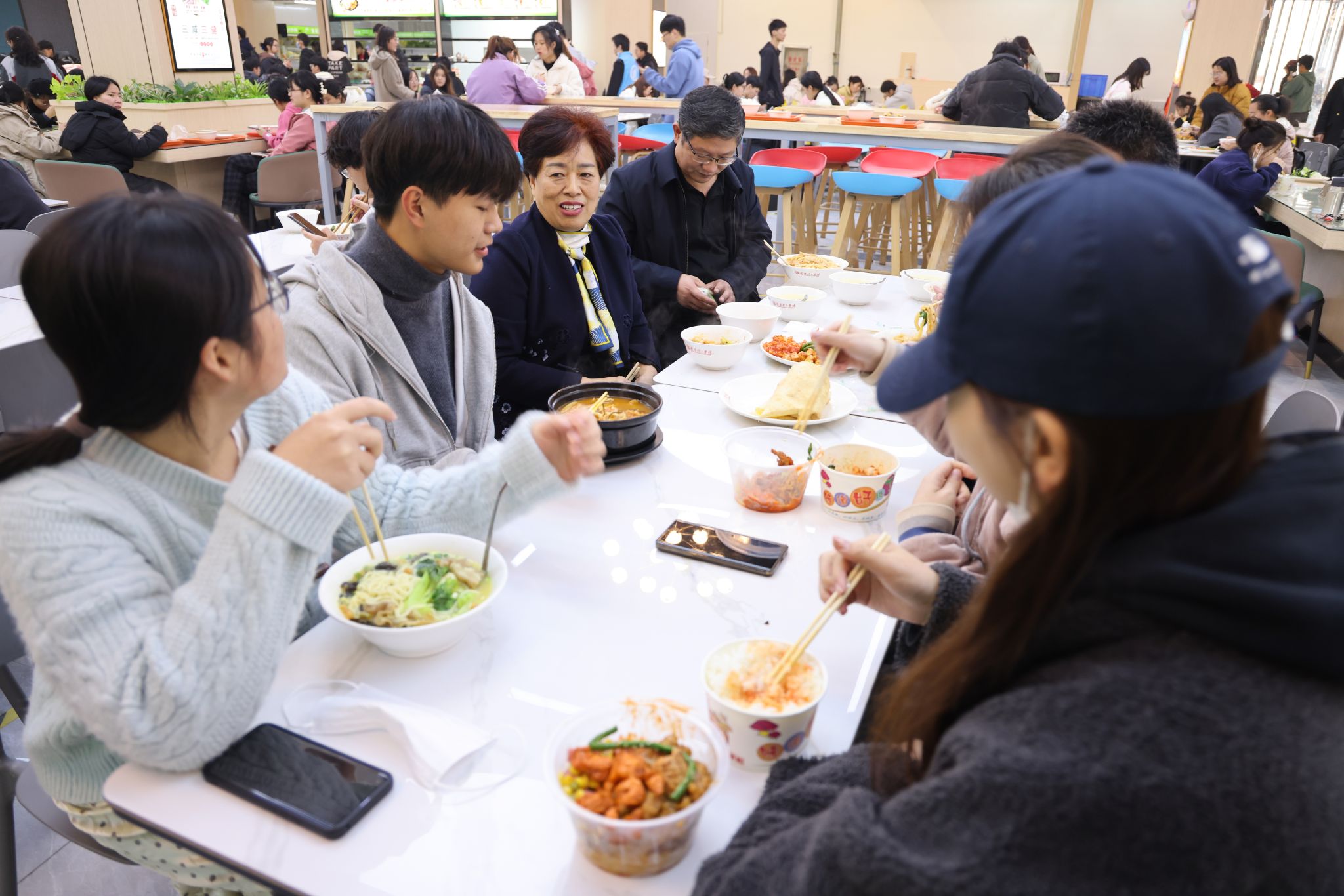 本网讯 11月15日,校党委书记刘荣英、副校长郝好山,党政办公室、党委宣传部、后勤服务中心主要负责同志深入学苑餐厅查看供餐保障情况并与学生共进午餐。
