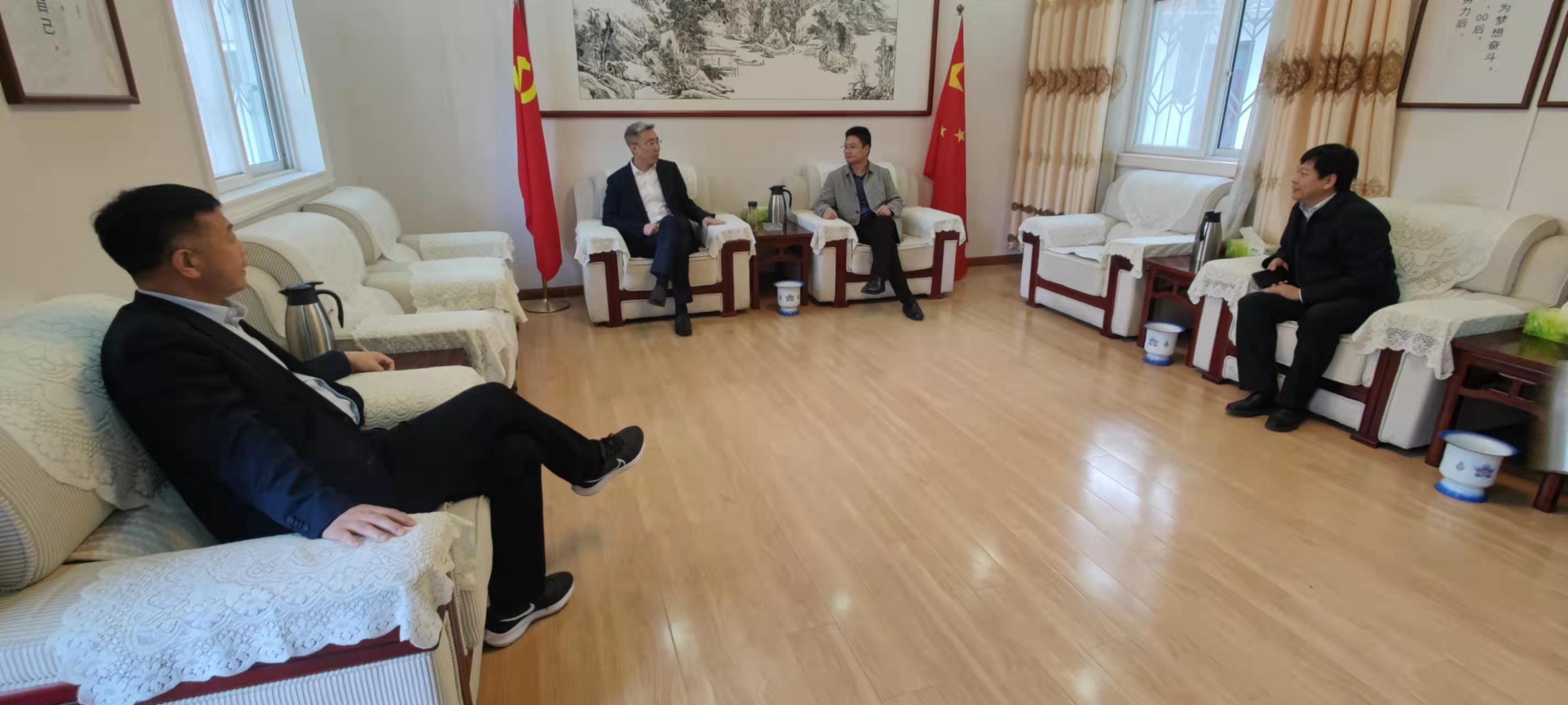 本网讯(特约记者/陈连山)4月6日,副校长郝好山一行赴南召县开展校地结对帮扶工作实地调研,南召县委书记方明洋、组织部长李军等参加座谈会,对校地结对帮扶工作进行研讨交流并安排部署相关工作。
