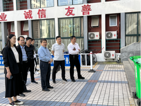 市机关事务中心一行人实地查看学校对生活垃圾投放、充电桩建设、杜绝餐饮浪费、节能宣传等工作开展落实情况,听取学校相关工作汇报,对我校生活垃圾分类工作予以高度肯定,并提出改进建议。