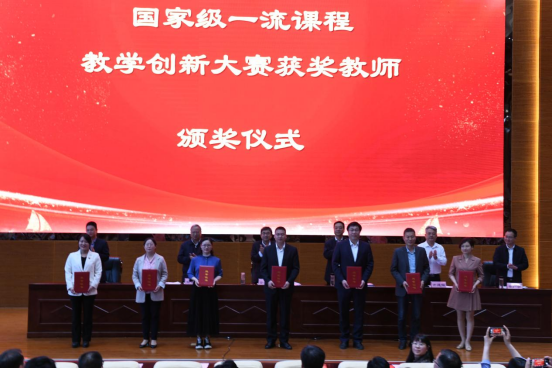 会上表彰了“国家一流课程”“教师教学创新大赛”“优秀教研室”“优秀教务办”等集体和个人,颁发荣誉证书、奖牌和奖杯。张仲景国医国药学院、范蠡商学院、食品科学与工程教研室、土木工程学院教务办代表获奖集体和个人作交流发言。