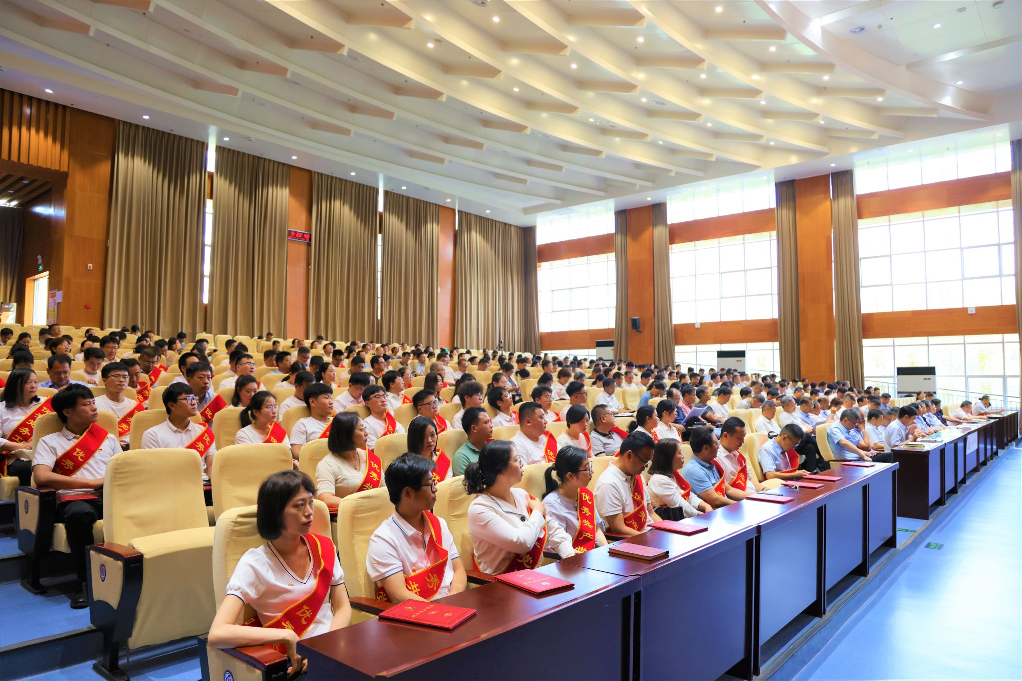 陈鹏 张霄)6月30日上午,我校在第三学术报告厅隆重召开庆祝建党102周年暨“两优一先”表彰大会。校领导刘荣英、安士伟、董豪、张爱红、葛晨光、蔡广宇、高芳放,以及全体受表彰对象、中层干部、各基层党支部书记、专职组织员等近400人参加会议。
