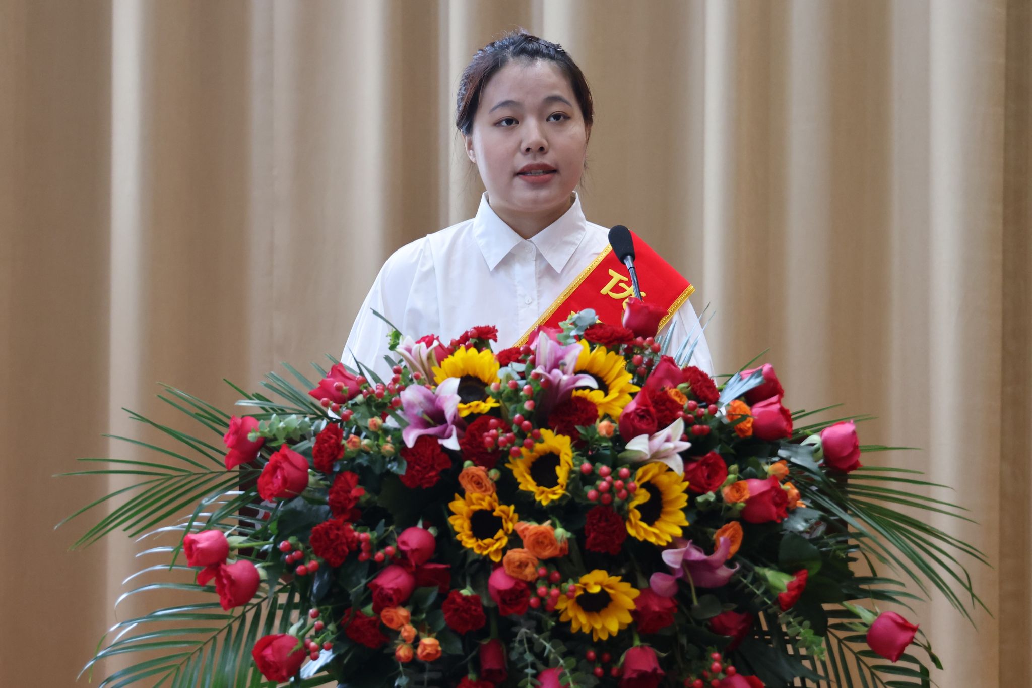 校领导为受表彰对象代表颁发荣誉证书和奖牌。优秀教师党员代表信息工程学院李定珍、优秀学生党员代表计算机与软件学院郑景珊、优秀党务工作者代表智能制造学院刘忠超、先进基层党组织代表传媒学院张旭东作代表发言。(校对/张坡 审核/丁欢 摄影/谭萌 责编/肖邓华)