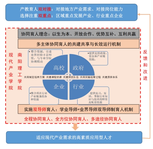 双向流动,营造产教融合新生态。先后选派20名专业教师进行暑期跟岗访学、年度顶岗训练;36名企业导师带领学生开展沉浸式实景、实操、实地的实践教学,完善师资双向流动,建成10个校外实践教学基地,接纳近500名学生实习,近100名学生在合作企业就业。不断扩展合作空间,搭建起产业链、教育链、人才链、创新链良性循环的协同育人生态圈。企业师资来院讲授课程15门次(15人),学院选派8位教师参与企业经营过程,开设南阳理工学院牧原班。(作者/郭永奇 校对/徐文华 审核/逯忆 责编/肖邓华)