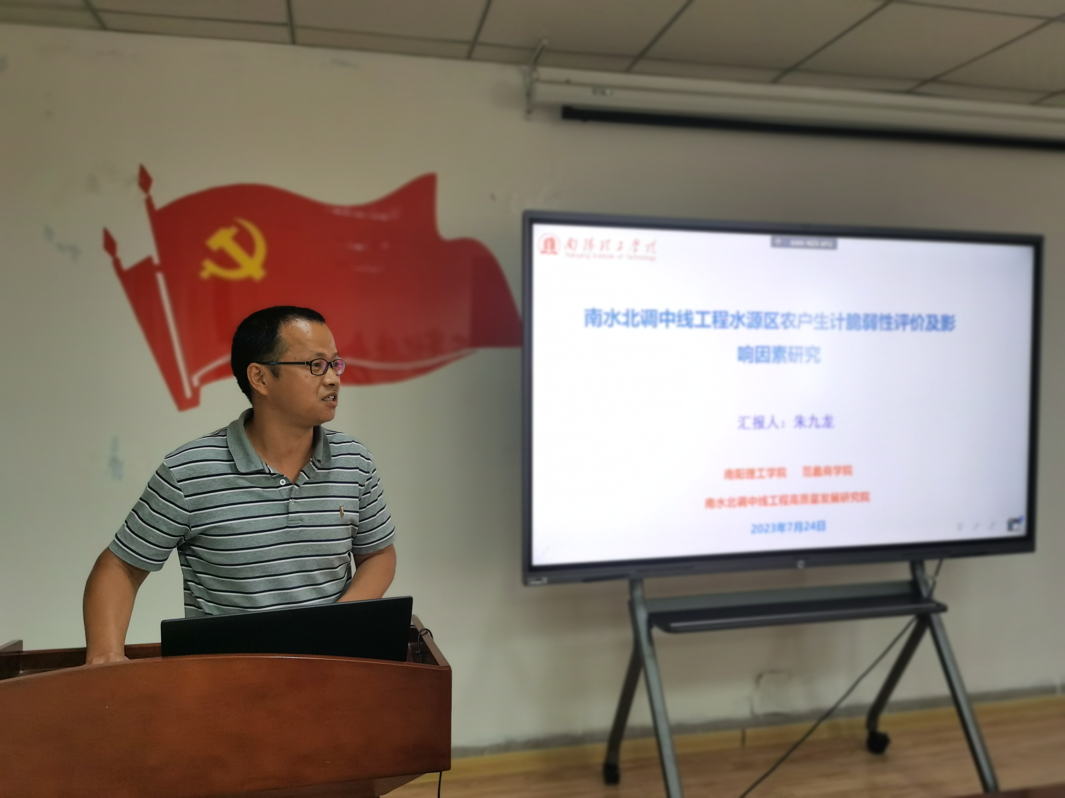 朱九龙作题为《南水北调中线工程水源区农户生计脆弱性评价及影响因素研究》的报告