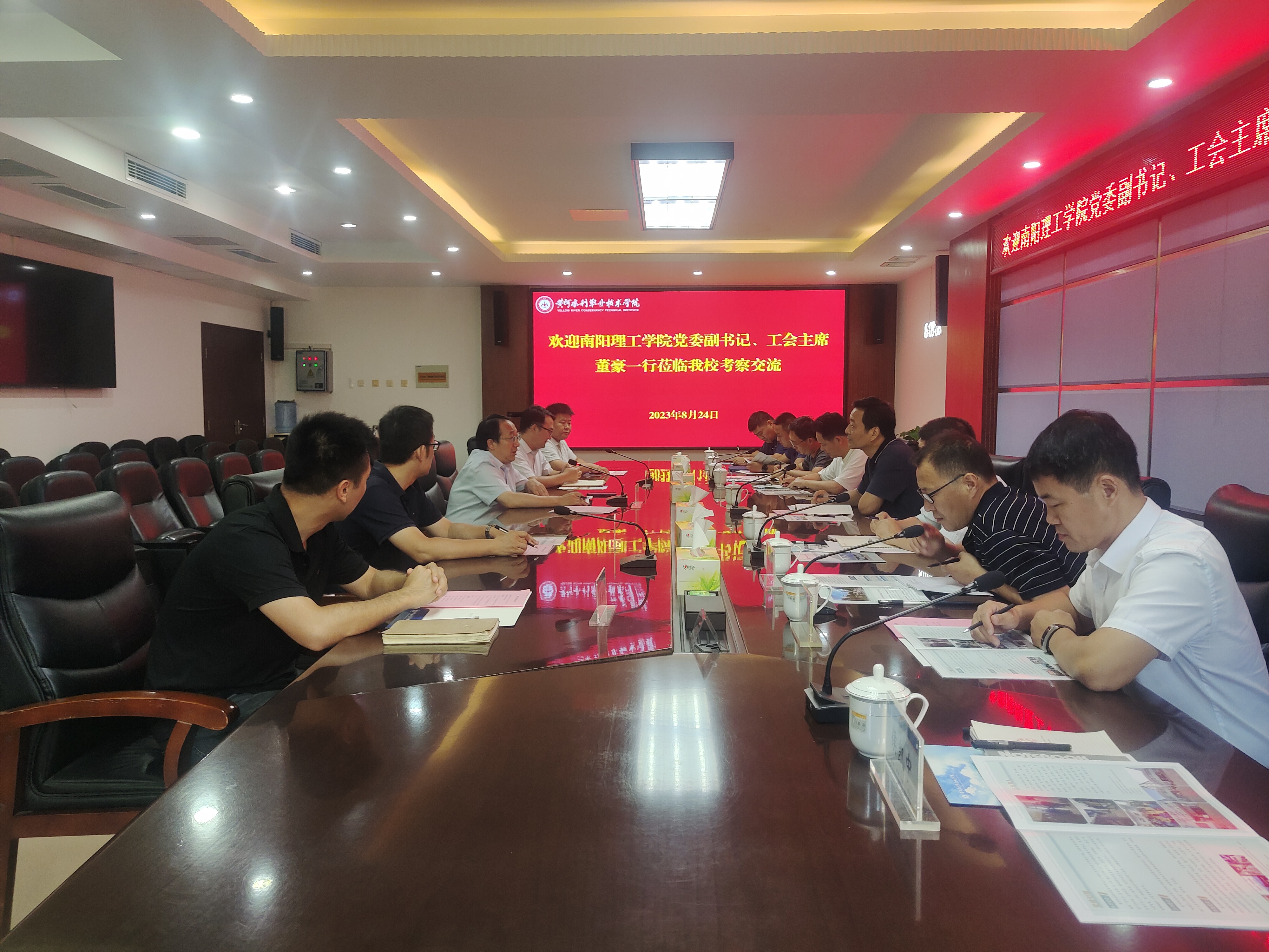 侯凯中)为扎实推进我校“一站式”学生社区建设,8月24日,校党委副书记、工会主席董豪带队赴黄河水利职业技术学院考察调研“一站式”学生社区综合管理模式建设工作,党委学生工作部、后勤服务中心及相关教学院负责人参加考察。