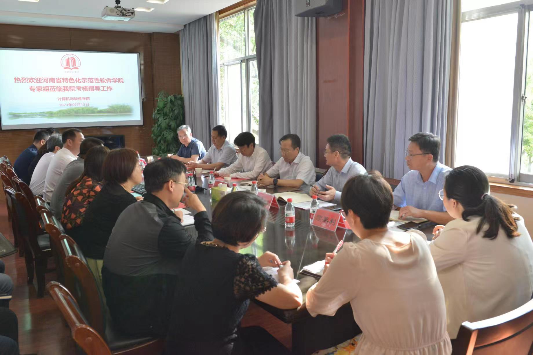 郑珂)9月13日下午,由黄河科技学院副校长杨保成任组长,河南科技大学特色化示范性软件学院院长孙士保、河南牧业经济学院特色化示范性软件学院院长连卫民组成的考核组莅临我校检查考核。校长郝好山出席会议,党政办、发展规划处相关负责同志及特色化示范性软件学院骨干教师及学生代表参加会议。