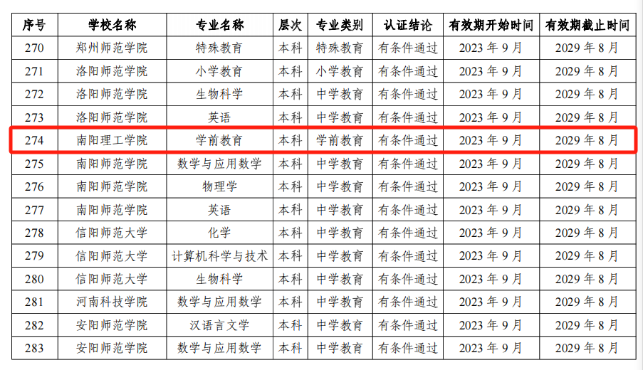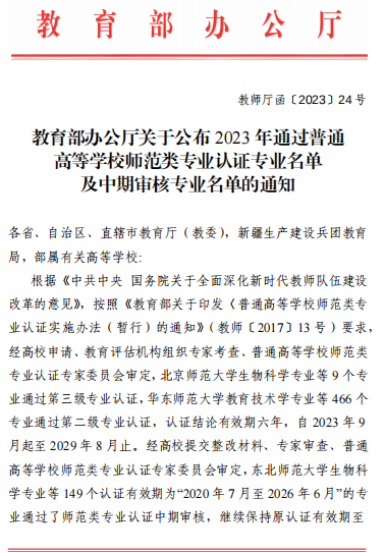张燕 周凤瑾)近日,教育部办公厅公布2023年通过普通高等学校师范类专业认证专业名单及中期审核专业名单,我校学前教育专业经过提出认证申请、通过认证自评报告审核、完成教育评估机构专家考查、普通高等学校师范类专业认证专家委员会审定等环节,最终顺利通过第二级专业认证。