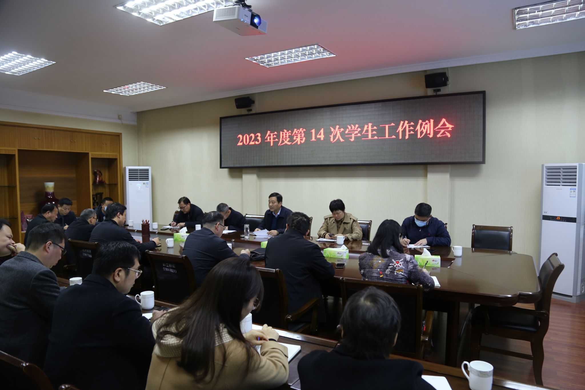 张启鑫)11月20日下午,校党委副书记、工会主席董豪主持召开我校2023年度第14次学生工作例会,安排部署2024年上半年征兵宣传动员、辅导员素质能力大赛、“一站式”学生社区综合管理模式试点建设等工作。
