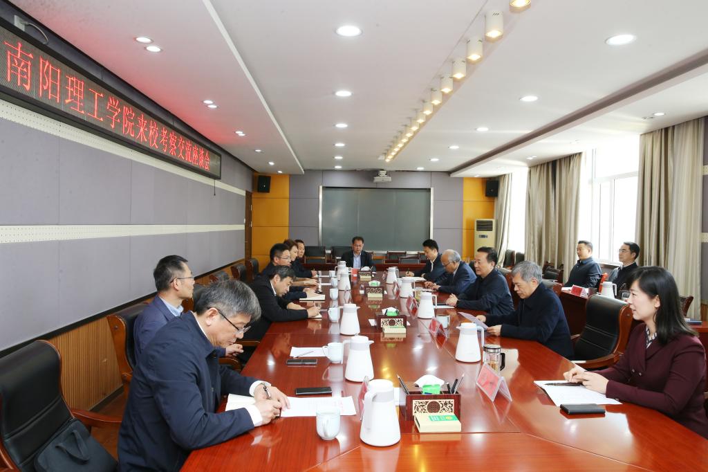 本网讯(特约记者/马俊)4月12日,南阳理工学院党委书记安士伟、校长郝好山带队,赴信阳师范大学考察学习,纪委书记、监察专员于继武和党政办公室、人事处、学生处、发展规划处、研究生与学科建设处负责同志陪同考察。信阳师范大学党委书记王文鹏、校长李俊与安士伟、郝好山一行会见并座谈交流。