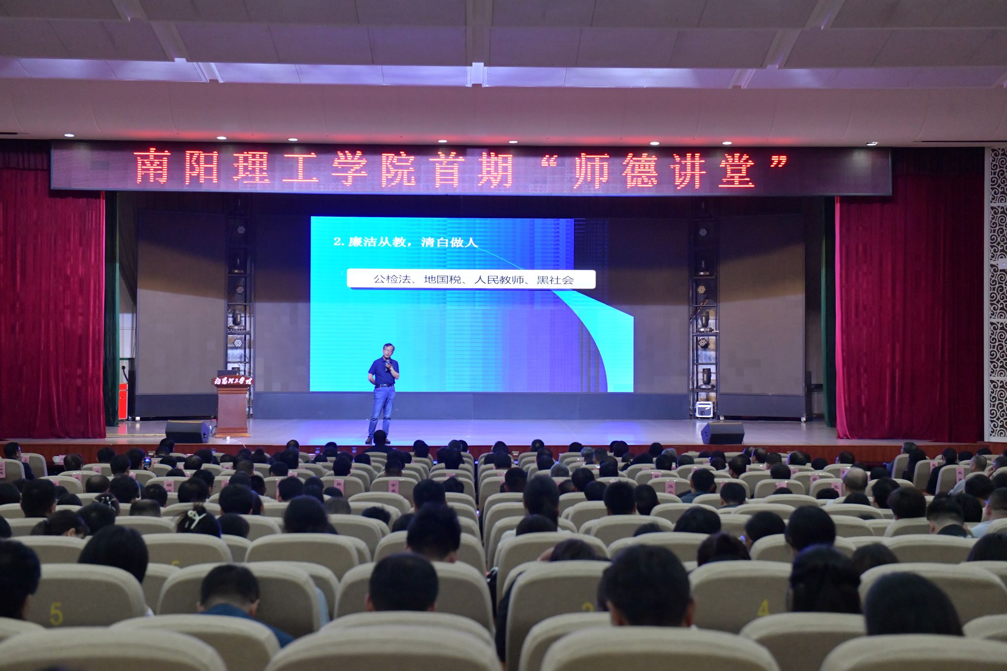 据了解,“师德讲堂”以《新时代高校教师职业行为十项准则》为主要内容,通过报告、演讲、观看视频、学习先进典型等形式组织开展。共设计组织一次习近平总书记关于教育、教师的重要论述、重要讲话、重要指示批示精神的集中学习;观看一个师德先进典型视频;开展一堂师德宣讲教育;组织一场师德警示教育等四个环节。该活动旨在引导教师以德立身、以德立学、以德施教、以德育德,营造崇尚师德、争先创优的良好氛围,持续推动学校师德师风建设工作。(校对/王刘琦 审核/张洪峰 编辑/肖邓华 终审/逯忆)