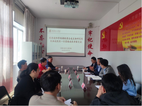 宋学宁)4月17日,牧原实验室行政副主任张立辉、南阳市西湖牧原合成生物研究院科研副院长朱湘成一行来校考察交流。我校校长助理常军乾,科研管理处、生物与化学工程学院主要负责人等人员参加座谈。