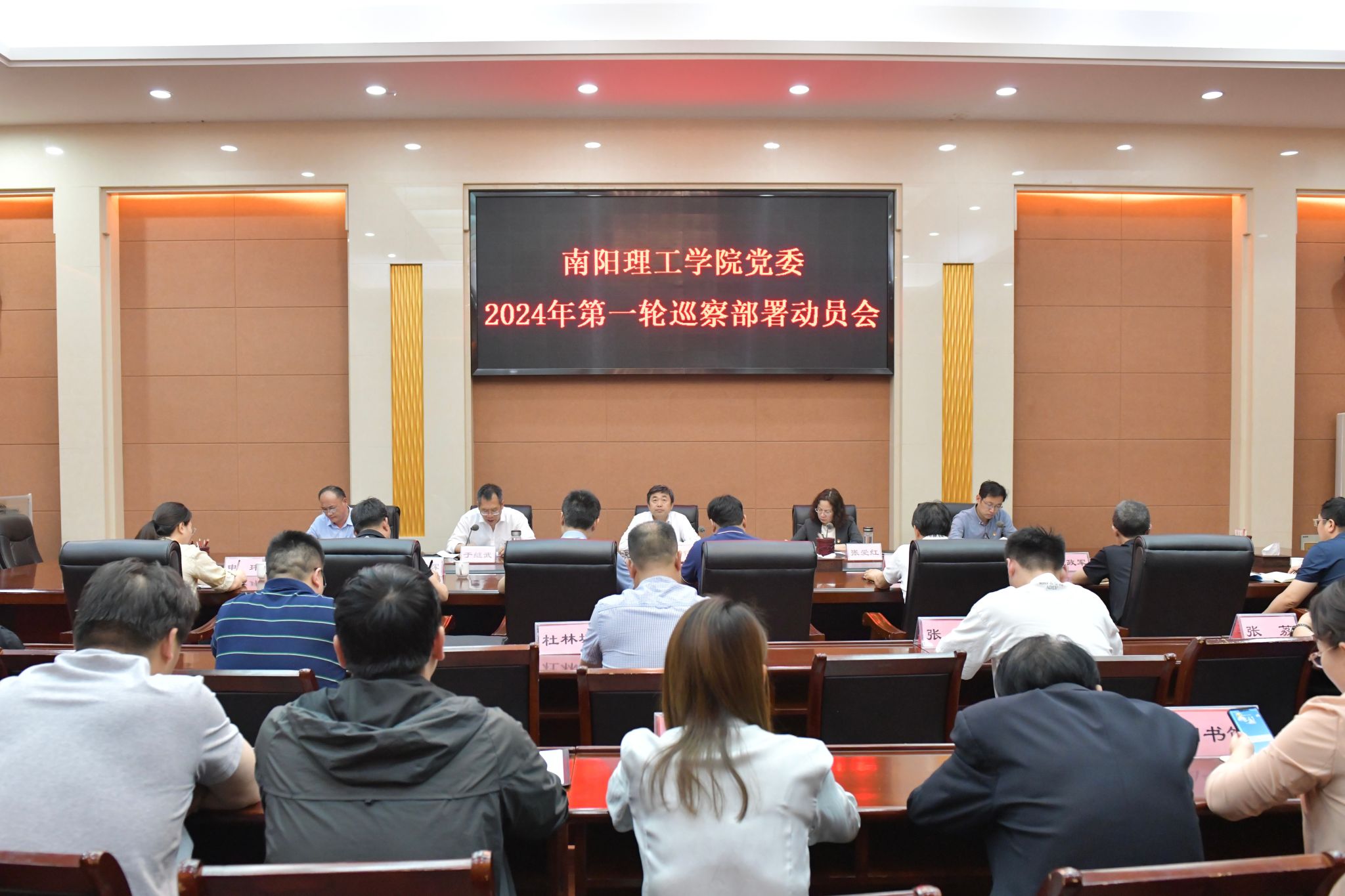 会议宣读校党委第一轮巡察工作方案,宣布巡察组长授权任职和任务分工。