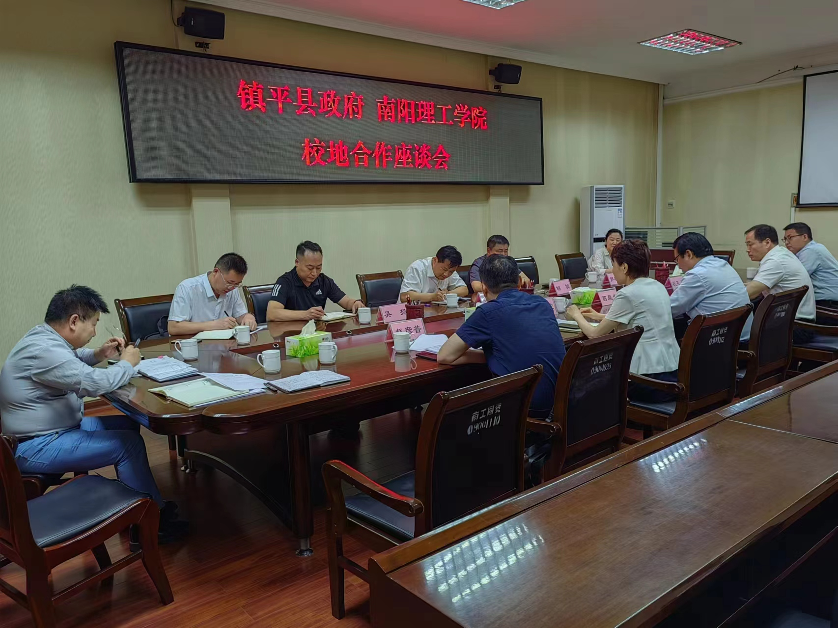 徐文华)6月4日上午,镇平县政府副县长黄玉、南阳工艺美术职业学院校长胡楠一行6人来校商讨珠宝玉雕产业学院共建等事宜,副校长葛晨光主持召开座谈会,镇平县政府办公室、教育体育局、县金融服务中心、镇平县聚鑫产业发展有限公司,我校发展规划处、招生就业处、范蠡商学院、校地合作管理与服务中心主要负责同志参加座谈。