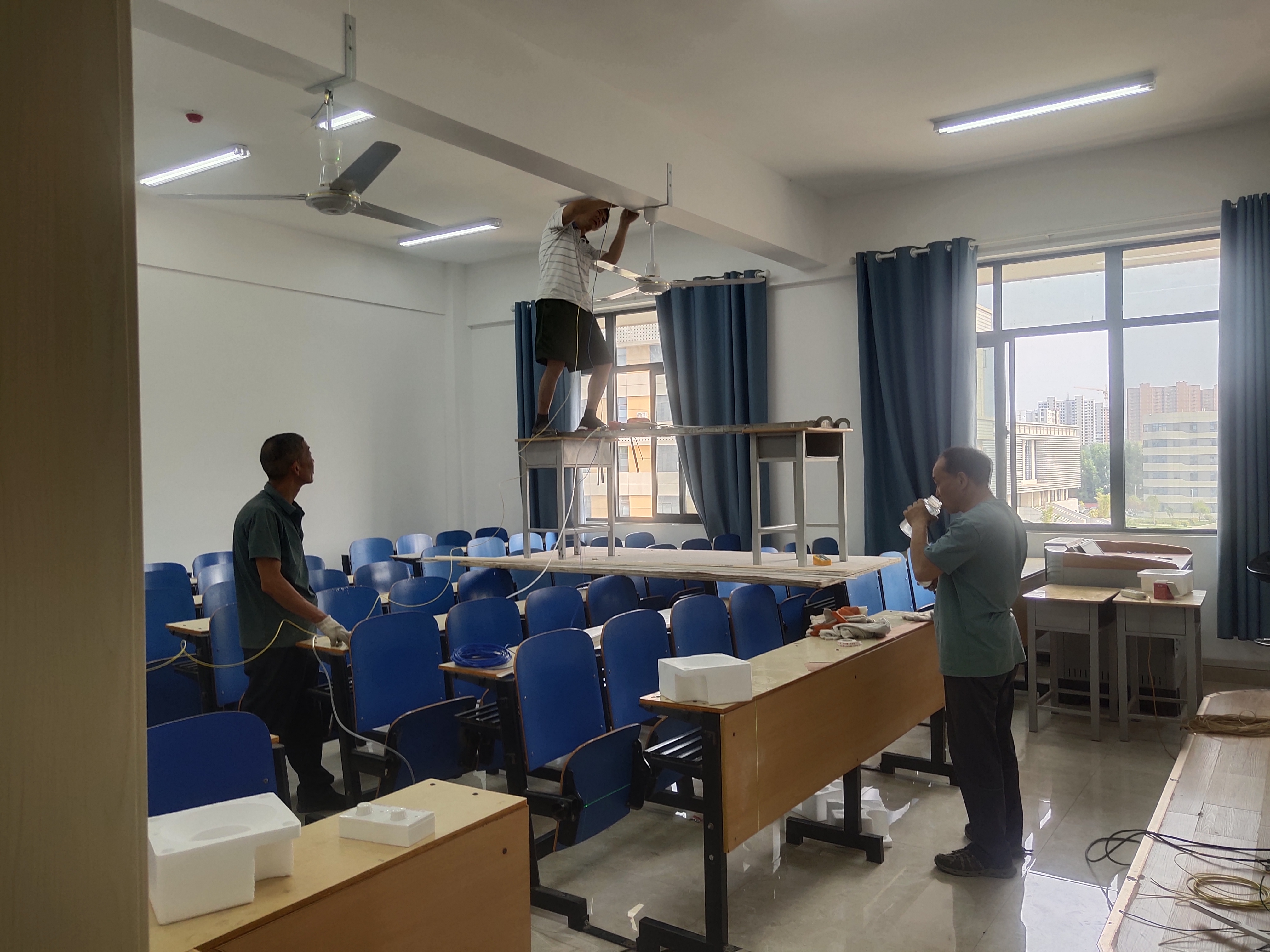 随着气温不断升高,校内用电量急剧增加。为合理利用能源并确保用电安全,后勤服务中心组织专门队伍对供电设施设备进行检测维护,提高检修响应速度,及时排除各类隐患。针对 19#学生公寓因用电负荷过大而频繁跳闸的故障,后勤中心迅速排查故障,加急采购电缆,加班加点改造架设临时线路,有力保障了学生的正常用电;维修班组连夜为 4 栋教学楼的部分公共教室安装吊扇,目前已安装 110 台。此外,校文明办向全校发出节约用电安全用电倡议书,呼吁师生共同关注用电安全,合理节约用电。